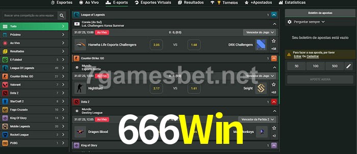 A aposta 666Win oferece aos jogadores a experiência mais conveniente de apostas em eSports!